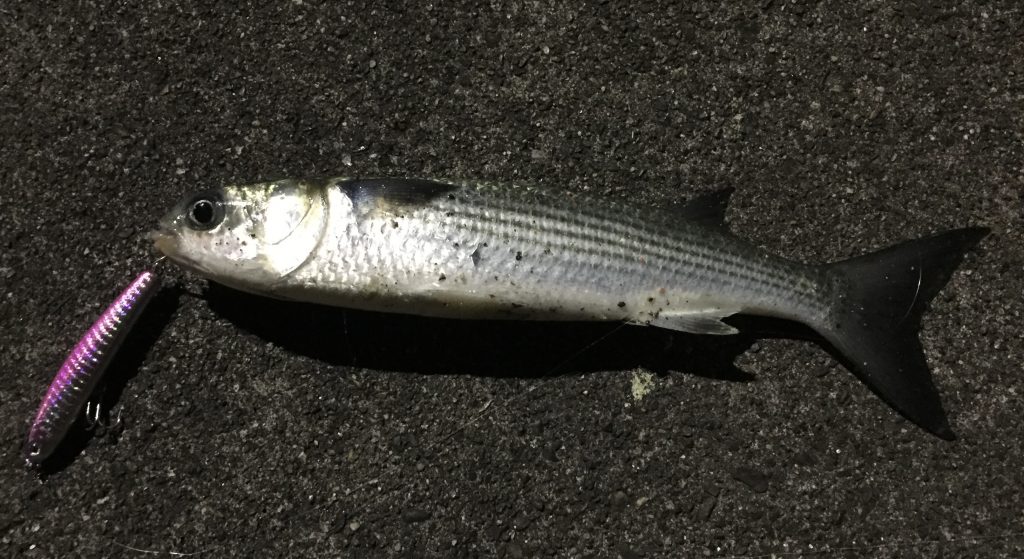あとこの魚も釣れたりしました。ボラですねw 釣り人からは嫌われがちなこのボラですが、私は好きですね。ルアー釣りで初めて釣れてくれた魚でもありますし。食べることはしないけどw